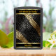 The intricate texture of a black and gold snake skin showcases a stunning natural artistry. The glossy scales gleam under the light, revealing an interplay of dark and metallic hues. MONOGRAM ADD YOUR NAME