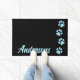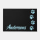 Welcome guests to your home with these elegant turquoise blue glitter paw prints and personalized monogrammed name doormats and home decor This blue and black paw print design is trendy, elegant and a favorite. A must have for every pet cat or dog mom, and animal, cat, and dog lover. Wonderful personalized Christmas or birthday gift. COPYRIGHT © 2020 Judy Burrows, Black Dog Art - All Rights Reserved