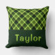 Elegant Pea Green Plaid Monogram Big Throw Pillow