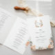 Make your wedding day uniquely yours with our customizable vintage peach, sage green, burnt orange, blush pink, and cream folded program with monogram. It includes a place for wedding party information, a timeline of events, order of ceremony, reception information, in loving memory, and a thank you message from the couple.