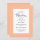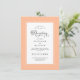 Peach wedding reception enclosure card design features a beautiful chic border in trendy peach that includes an elegant petite white border. Calligraphy and script are charcoal gray on a white background. A modern template for date and year compliments the unique calligraphy design. [NOTE: The wedding date display as shown, uses the vertical bar or line which can be found above the \ on a keyboard or on your smart device with the special characters. You can also customize with any other character of your choice.] The back of the card is solid peach.