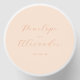 This elegant wedding candle features a minimalist design with a soft peach background, creating a serene and inviting atmosphere. The names "Penelope" and "Alexander" are elegantly written in flowing cursive script, connected by the word "AND," while a simple sans-serif font displays a significant date beneath. The subtle color palette of muted peach tones enhances readability and adds to the clean aesthetic, making it perfect for commemorating special occasions like weddings or anniversaries. The understated elegance and warm tone evoke feelings of celebration and refinement, ideal for those seeking a sophisticated touch for their event.
