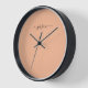 Modern clock with an orange (peach fuzz) background and a hand lettered black girly script name. Personalize with your name