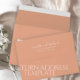 Add a touch of elegance to your wedding invitations with these return address envelopes, featuring a botanical peach design perfect for spring, summer, or fall celebrations. These 5x7 A7 wedding invitation envelopes showcase a beautiful calligraphy script and simple minimalist typography for a classic, timeless look. Customize the basic solid color template to suit your wedding theme effortlessly, creating an inviting and cohesive impression for your special day.