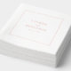 These wedding napkins feature a minimalist and elegant design with a soft peach color palette against a clean white background. The layout is centered, showcasing a simple rectangular border framing the text in a refined serif font that adds sophistication. Perfect for modern weddings, the understated style conveys a mood of tranquility and grace, making them ideal for creating an inviting atmosphere at your special event.