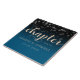 Make your special day an unforgettable celebration with this simple but stylish tile, which features elegant handwritten and block lettering in peach with a shower of confetti set on a black to dazzling oceanic shade of blue evocative of the Mediterranean background. Customize as desired.