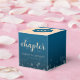 Make your special day an unforgettable celebration with this stylish favor box, which features elegant handwritten and block lettering with a shower of confetti set on dazzling-oceanic-shade-of-blue-evocative-of-the-Mediterranean-to-black and peach backgrounds. Customize as desired.
