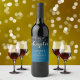 Add your personal brand to your special day with these celebratory simple but stylish wedding wine bottle labels, which feature elegant handwritten and block lettering in peach with a shower of confetti set on a black to dazzling oceanic shade of blue evocative of the Mediterranean background. Customize as desired.