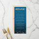 Add a touch of elegance to your wedding reception with this simple but stylish dinner menu, which features elegant handwritten and block lettering in peach with a shower of confetti set on a dazzling oceanic shade of blue evocative of the Mediterranean to black background. Customize as desired.