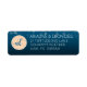 Add style to RSVP correspondence with these stylish return address mailing labels, which feature elegant handwritten and block lettering in peach with a shower of confetti set on a black to dazzling oceanic shade of blue evocative of the Mediterranean background. Customize as desired.