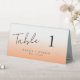 Elegant Peach Orange Fuzz Wedding Table Number Table Tent