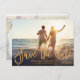 Elegant peach orange script 2 photos save the date, all the colors are fully editable to match your wedding color scheme.