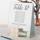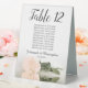 These tent table number signs are not only beautiful, they even include a list of names for the guests at each table, making it easy for your guests to find their seat at your wedding reception. The design is both elegant and romantic featuring a single sepia peach colored rose lying on its side reflecting in water with waves and ripples. The title is in lacy script calligraphy with bold numbers so your guests can easily find the right table. There is room for the names of the couple and the wedding date.