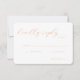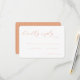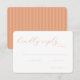 This wedding RSVP card features a minimalist design with ample negative space, creating an elegant and clean aesthetic. The soft peach color palette enhances the inviting tone, while the combination of flowing script and modest sans-serif fonts balances sophistication with readability. Customizable fields allow for personalization, making it perfect for formal communication needs. The overall mood is polite and courteous, ideal for capturing responses in a stylish yet straightforward manner.