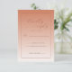 This wedding RSVP card features a soft gradient background transitioning from warm peach to cream, creating an inviting and elegant atmosphere. The design is centered with ample negative space, highlighting the script-like typography that adds a personal touch. Customizable elements include a stylish initial for personalization and clear RSVP options labeled "HAPPILY ACCEPTS" and "REGRETFULLY DECLINES." The minimalistic approach ensures clarity and ease of use, making it perfect for formal occasions requiring polite interaction.