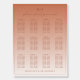 This elegant wedding seating chart features a warm peach background with a clean, modern layout. The design includes bold uppercase table numbers and customizable guest name placeholders in a simple sans-serif font, ensuring clarity and organization. With a minimalist aesthetic and ample negative space, it conveys a formal yet approachable mood, perfect for guiding guests to their seats at an organized gathering. The stylish script initials add a touch of sophistication, making it ideal for weddings or similar events.