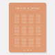 This wedding seating chart features a clean, modern design with a peach-colored background and black sans-serif typography. The layout is organized into twelve columns for easy seat assignment, with ample negative space ensuring clarity and readability. Its minimalistic style conveys a formal yet approachable mood, perfect for an elegant gathering. Customizable elements allow for personalization, making it ideal for weddings or large events where clear communication of seating arrangements is essential.