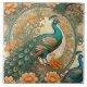 HERA. Beautiful ceramic tile featuring a majestic peacock on floral background. Vintage Art Nouveau Inspired look. Generative Art design.