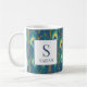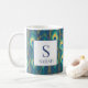 This luxurious personalized mug showcases a rich Art Deco inspired peacock feather pattern in deep navy, turquoise, and metallic gold accents. The stunning design includes a classic framed initial and name. Easily customize it with your name and initial to create a gorgeous monogram gift that elevates any routine. It's the perfect elegant coffee cup for teachers, coworkers, or anyone who loves jewel tones and sophisticated, maximalist decor.