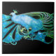 ELEGANT PEACOCK JEWEL IN AQUA BLUE TEAL CERAMIC TILE