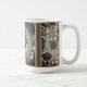 HERA Mug. Beautiful mug featuring a moody paneled design of peacocks and floral motifs. Vintage Art Nouveau inspired look. Generative Art design.