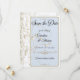 The matter paper is our sample of choice -- it's a reasonably priced, good quality, nice feeling paper stock. We were a little concerned the muted rustic blues might not reproduce all that well (usually by light colored samples), but they're just gorgeous! The white lettering is perfect in combination with the blue background, and the typography is all easy to read.