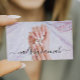 Elegant, trendy business card for nail technician featuring pearl background and handwritten calligraphy script ''nails by ' in deep black color. Personalize with a name on the front and details on the back.