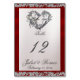 Elegant Pearl, Red Ribbon & Sparkle Table Number