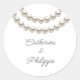 White Elegant Wedding Sticker featuring a silver pearl necklace in watercolor. It’s very easy to customize, with details of your personal details.