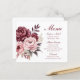 Enhance your wedding celebration with this elegant floral wedding menu featuring stunning blush pink, burgundy, and maroon peony flowers. Perfect for any season—fall, winter, summer, or spring—these charming peonies add a touch of romance and sophistication to your special day. Ideal for garden, botanical, vintage, country, and rustic weddings, this watercolor design captures the timeless beauty of nature. Make your wedding unforgettable with this exquisite floral menu.