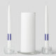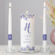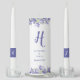 Elegant botanical Wedding Unity Candle Set features a beautiful floral arrangement in varying shades & tints of trendy periwinkle blue on soft lush greenery. Personalize wedding details with your names, initial and wedding date design in periwinkle blue lettering and script on a white background accented with a trendy floral arrangement. Each taper has bride and groom's single initial in matching script. Makes a beautiful addition to the ceremony and wedding keepsake for the newlyweds!