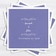 Elegant, classic Wedding napkin features a chic design in crisp white on a trendy periwinkle blue background. This modern simple design provides classic sophistication. Personalize names of couple and event date in elegant periwinkle lettering and script . These are a perfect accompaniment for any wedding party! Be sure to see the collection link on this page to view all of the matching items! Please direct questions or custom requests to invitationsuites@gmail.com.