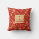 Elegant Personalized Gold Floral Pillow on Rich Red Background