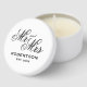 Elegant personalized wedding party Mini Candle Favors. Small soy candle tins with custom name and date of marriage. PErefect gift for friends and family attending your special day. Cute keepsake template with classy script typography.