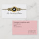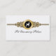 Elegant pet grooming business cards with simulated gold metallic accents, a poodle dog silhouette symbol, and beautiful text in fancy script on the front, with all your pertinent contact information on the back you can customize to your liking. Designed for a pet groomer, pet salon, or pet care service.