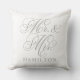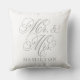 Elegant Pewter Gray Mr and Mrs Script Wedding Throw Pillow