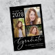 Elegant black graduation announcement featuring a 3 picture photo collage and "Graduate" in a stylish white script. Add the grad's name, class year and school or university in modern white typography.
