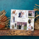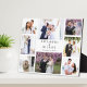 An elegant custom photo plaque for newlyweds featuring an 8 photo collage of your wedding day, engagement, honeymoon, bridal party, groomsmen, family, etc., pictures and your names and wedding date in elegant typography.