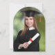 Classic arch-shaped black college graduation announcement that features "Class of" in a gold illustration of a laurel wreath incorporating a grad cap and diploma, and the graduate's name in an elegant light gold script. Add their school, major, honors or future plans in simple gold typography. The grad's photo fills the back of the card.