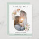Announce your wedding date with this elegant photo wedding save the date card! Design with beautiful oval photo overlay with exquisite floral detail and modern hand written calligraphy details. Floral details in a beautiful blend of beige, dusty rose, blush, terracotta, rust, orange, green and a hint of blue hues. Stripe on bottom in sage green tone to highlighting your date. Ability to change stripe color to white or other by selecting "customize further". Back with your names and save the date details over a sage green background color and attractive floral detail on the bottom. Also available with back in white. Part of our "earthy Blooms in Sage Green and Terracotta" collection with a variety of coordinating products available including complete invitation suite.