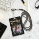 Elegant, trendy business badge for notary loan signing agent featuring faux foil gold handwritten calligraphy script ''notary'' on a black background. Personalize with your details.
