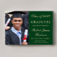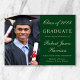 Simple and modern green college graduation announcement featuring a photo of the graduate, his or her name and class year in an elegant gold script and his or her university, major and honors.