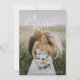 Simple Wedding Announcement Cards with "Just Married!" in an elegant handwritten script across the top left and your names and wedding date in the bottom right, over your favorite photo. The backside has your personal message in black over a white background. The chic hand lettering adds a romantic touch to this minimalist design.