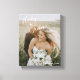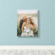 Modern wedding gallery wrapped canvas with a simple design featuring your names in an elegant handwritten script across the top left and your wedding date in the bottom right, over your favorite photo. The chic hand lettering adds a romantic touch. Display your favorite engagement picture at your reception or give this as a gift for a newlywed couple for their first anniversary.
