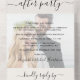 Elegant wedding reception all in one invitation featuring your wedding day photo overlayed with your customized announcement and invitation and "Happily Ever After Party" written in simple typography and a stylish script with swashes. Input your wedding website URL address to create a QR code for your guests to RSVP online and obtain additional details. A tear away RSVP postcard provides a convenient and eco-friendly and envelope-free response from your guests that prefer to RSVP by mail.