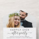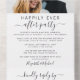 Elegant elopement or private wedding announcement combined with a wedding reception invitation to announce your marriage to family and friends and to invite them now to a post-wedding reception or party. This design features your photo and customized marriage announcement and reception invitation, "Happily Ever After Party" in a mix of simple typography and a stylish script with swashes. Input your wedding website URL address to create a QR code for your guests to RSVP online and obtain information on accommodations, directions, any night before parties and other details. A tear away RSVP postcard provides a convenient and eco-friendly and envelope-free response from your guests.