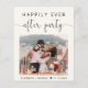 Elegant light cream budget-friendly private wedding or elopement announcement and reception invitation featuring your wedding day photo, "Happily Ever After Party" in simple typography and a chic script and your names and wedding date. On the back, input your wedding website URL address to create a QR code for guests to scan for all the details and to RSVP online, personalize your announcement and reception details and add your names in a signature-like script.