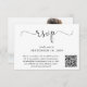 Elegant wedding RSVP card that features "rsvp" in a stylish script with swashes. Input your wedding website address to create a QR code that your guests can scan to RSVP online. The back features your photo overlayed with your first names and wedding date joined together by a heart.