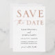 Foil pressed Wedding Save the Date with a modern elegant vibe. Include your photo on the backside or delete and leave blank. Edit with your wording and select from three different foil colors including gold, silver and rose gold.
