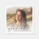 Elegant graduation party napkins featuring the graduate's photo overlayed with "Graduate" in a modern script and their name and class year in simple typography.